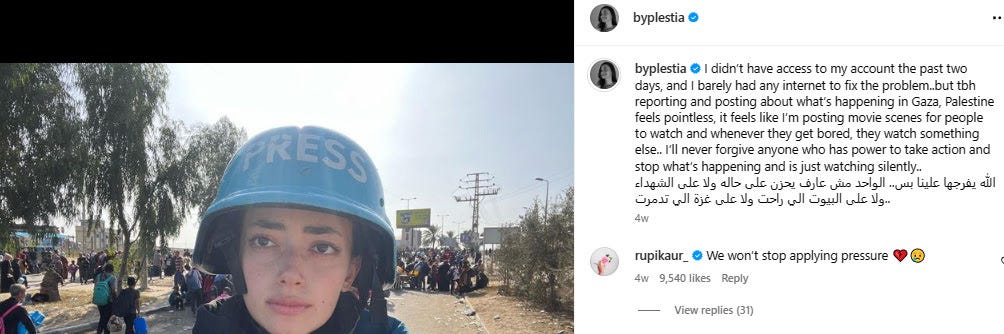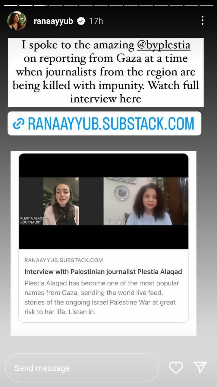 I know a lot of high-ranking media, such as New York Times, Guardian, Anadolu, BILD, Spiegel, Financial Times, Strait Times, Washington Post etc subscribed my substack. Plestia ‘Bosbos’ Alaqad ready to be your Stringer or Keynote Speaker or Source about [everything related] Gaza, as Global Opinionator the Washington Post Rana Ayyub Rana Ayyub doing around 59 hours ago, please contact Plestiaa2011@gmail.com or collab@plestiaalaqad.com