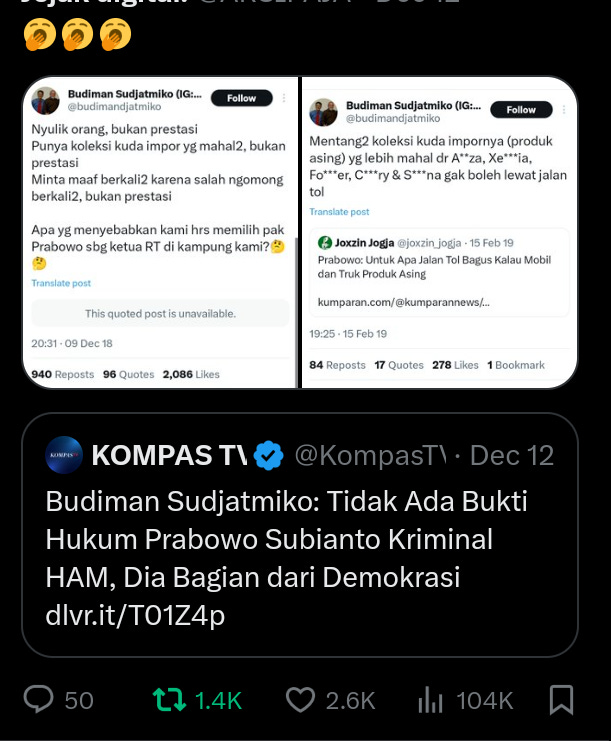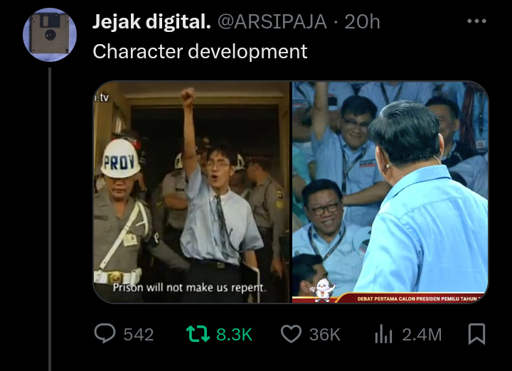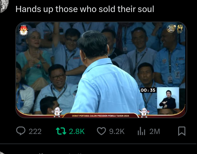 I'm struggling to decide whom to give my vote to next year. And also this is not only about Prabowo; it is also the failures of Jokowi who has failed so miserably in upholding human rights in Indonesia. So there's that, too.