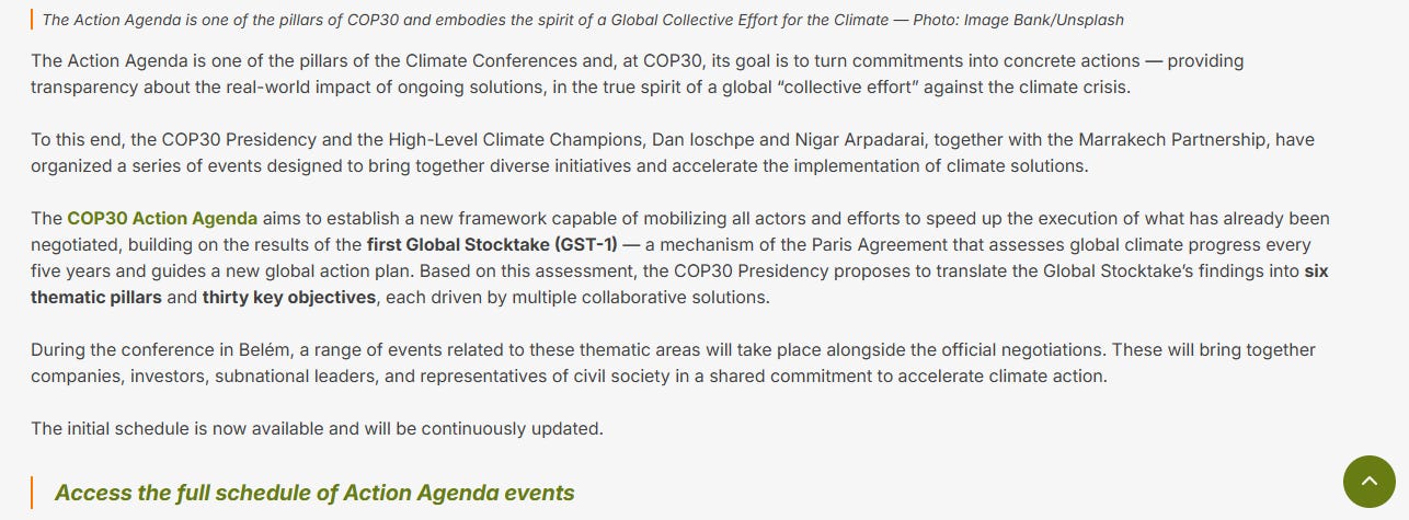 Next month, government officials, policymakers, and activists will flock to Belém, Brazil, for the United Nations’ annual climate change summit [UNFCCC / COP 30 / Conference of Parties 30], after last year [COP 29] in Baku, Azerbaijan. In the past, these conferences have focused on wealth distribution schemes and transitioning from fossil fuels. At this year’s conference, Bill Gates is advocating for a different strategy: shifting the primary focus away from climate change altogether.