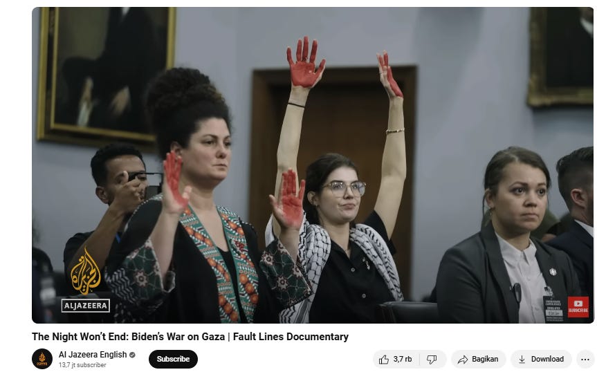 We as Muslim prohibited to fasting at least 6 days for entire year [365, or 366 in leap year]. 2 Days Eid Fitr / Eid el-Fitr [1 Shawwal and 2 Shawwal / Syawal Syawwal], Day of Eid Adha / Eid el-Adha [10 Dzulhijjah / Dhul-Hijjah - today], and days of Tashriq [11th, 12th and 13th Dhul-Hijjah / Dzulhijjah, or in Gregorian Calendar 2024, the days of Tashriq means 17-19 June]. But doesn’t mean prohibited for ‘less eating or hunger strike.’ As sacrifice in DC at least 13 days by Jennifer Koonings just because her protest about Gaza, I keep ‘eating less’ not only for her but also for Palestine, at least until 19 June. And for June 20th, back again for nonmandatory fasting, normally 17-18 hours, as even Jennifer, with her gut, sacrifice herself for Gaza. Wisdom quote I hear since war [Israel - Gaza] nonstop ‘’...You can't make people care about a genocide happening right in front of their eyes. They either do immediately, or a chip is missing up there, and they never will.’