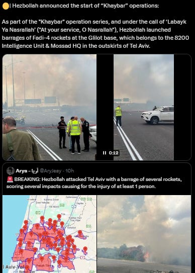 [Breaking, Ballistic Missile Hit Mossad HQ in Tel Aviv and Iron Dome Failed to Intercept]: As Regional War, Maybe WW3 Started, this is 'At Your Service Nasrallah'