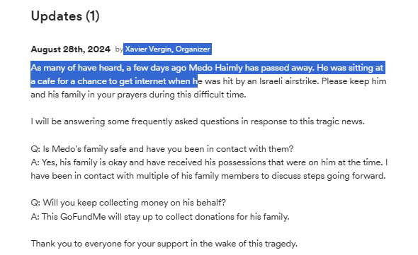 Unlike Israeli and pro zionist student [very easy] get a money [thanks for multiple billionaire], contrary, Palestinian very hard to get a money [like encampments across the world]. Link attached by CODEPINK Alert Jen Jennifer Koonings PMHNP, MS, MS, NYSAFE is Nagham, same healthcare worker like Jennifer but in Palestine. 3 Months ago is Nagham’s birthday. Link to donate. Nagham is still alive.