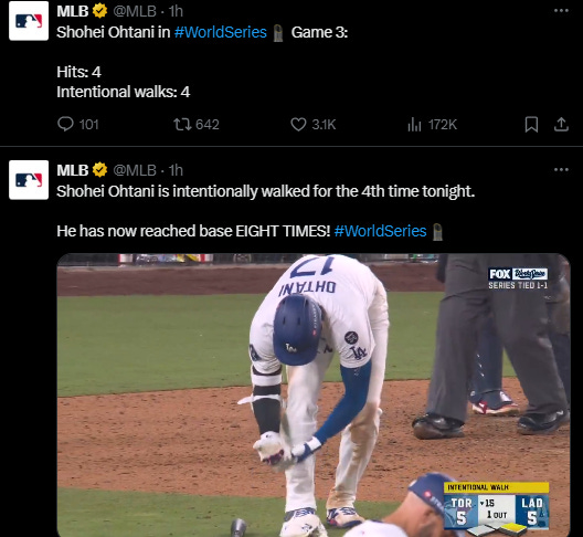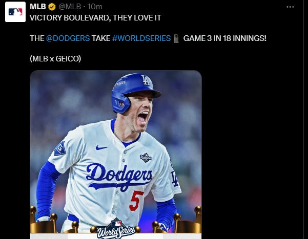 [BREAKING] Longest Ever World Series Game [So Far], Dodgers 2-1 Blue Jays [Midnight Result Game 3, Dodgers 6-5 Blue Jays]