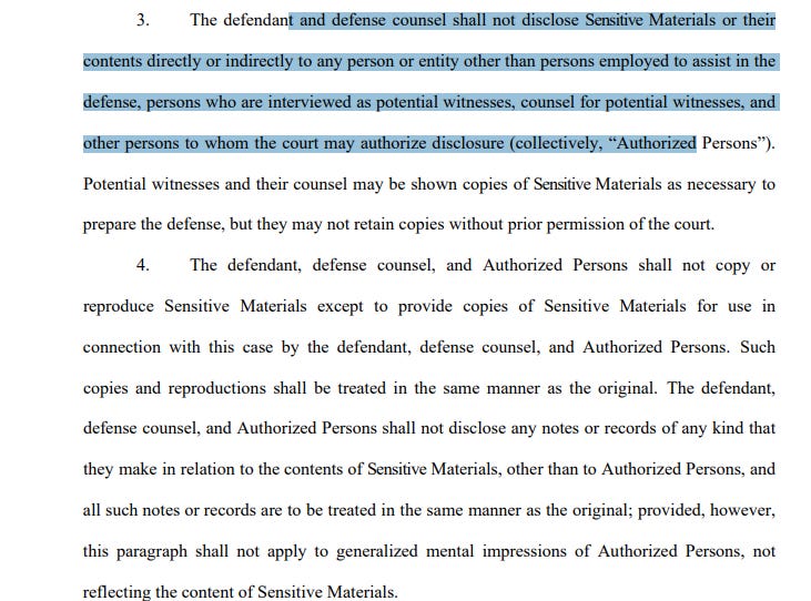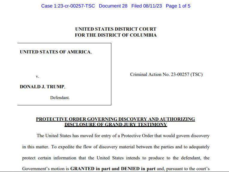The United States has moved for entry of a Protective Order that would govern discovery in this matter. To expedite the flow of discovery material between the parties and to adequately protect certain information that the United States intends to produce to the defendant, the Government’s motion is GRANTED in part and DENIED in part and, pursuant to the court’s authority under Federal Rule of Criminal Procedure 16(d)(1), it is hereby ORDERED. A federal judge limited Donald Trump’s ability to publicly comment on Jan. 6 evidence, and warned him against attempts to intimidate witnesses or prejudice potential jurors.