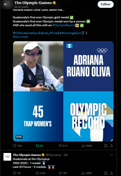 Similar achievement is Guatemala. After multiple participation in Olympics and just or only 1 Silver medal between Helsinki 1952 and Tokyo 2021, this year Paris 2024, Guatemala finally got 1st ever Gold medal, by Adriana Ruano Oliva, on Shooting.