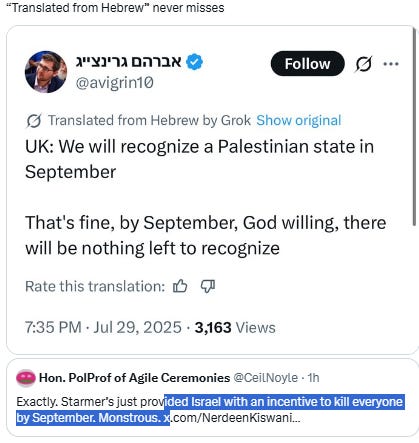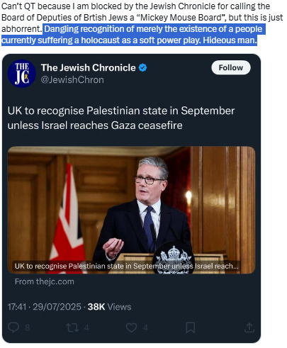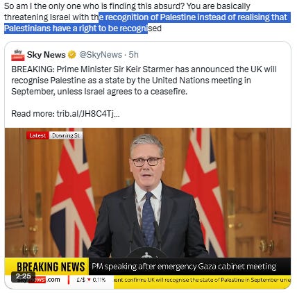 Starmer is even worse than we all imagined - he now uses the legal right to statehood as a bargaining chip in starvation. Starvation he explicitly gave his blessing to claiming it was permissible. And he's arming the c*nts too. A man with zero integrity.