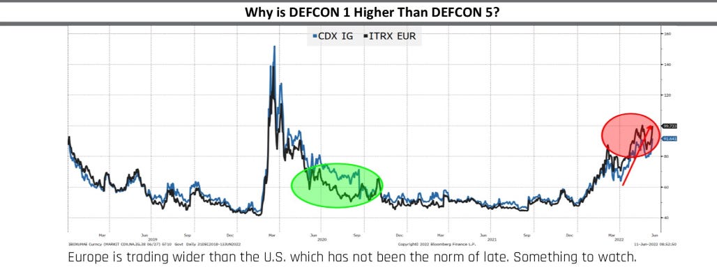 European Central Bank credit is now weakening more than US credit. Has the last ECB meeting put significant doubt in Quantitative Easing support and or created fear about fragmentation being political & messy? This (high inflation, conundrum stocks market, impact because of the Russia - Ukraine war) actually to be prevented when Biden was in Europe 2 months ago when met several NATO leaders like Scholz, Macron, Draghi?