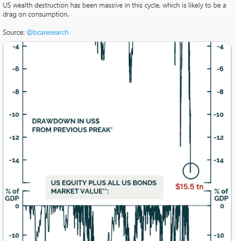 With chaos in the stock market in China since March 2022 and the last 3 weeks in the U.S., we’re going to speak of a recession in existence at this point. The offset is how long it takes the Fed to capitulate and turn dovish to reverse the recession. Persistent failure to regain control of the inflation narrative is turning the perception of the Fed that lacks credibility and inadvertently contributes to undue global financial volatility.