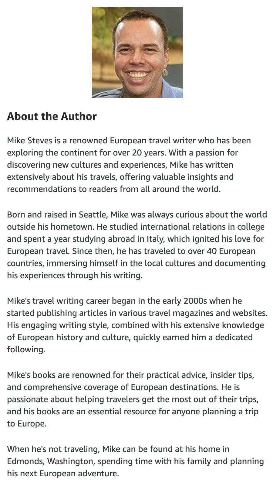 Rick Steves is prominent, respected author. Mike Steves is fake-scam, “thanks” to AI.