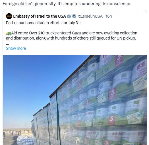 Starvation and humanitarian aid have been weaponized by the Israel-US-backed GHF, while Israel ices out UNRWA, the humanitarian aid agency with the single longest successful food operation on the planet.