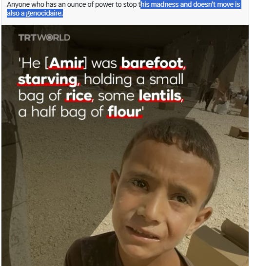 We won’t forgive the Israelis anything, but making a proud people beg & fight over scraps - their kids robbed of an education they revere for 2 years also risking death for a bag of flour - is disgusting, & we’ll see you all humiliated by the collapse of your vile Zionist project. Gaza isn’t just a tragedy. It is an Israeli crime of the century.
