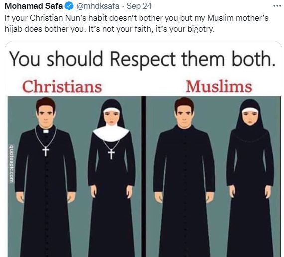 Apa yang terjadi di India dan negara-negara Barat adalah hal yang amat berbeda dibanding Iran. Saya tahu betul bahwa pakaian tertutup tidak mencegah pemerkosaan dan atau pelecehan seksual. Tapi pemakaian jilbab jauh lebih protektif dibanding tidak sama sekali. Itulah yang sebetulnya pada benak warga Muslimah di India, Perancis, Denmark misalnya. Bisa jadi mereka (Muslimah ini) malah pro situasi Iran, pro pada sikap melepas jilbab di Iran. Tapi bagi mereka sendiri, mereka tetap ingin berjilbab (di India, Denmark, Perancis).
