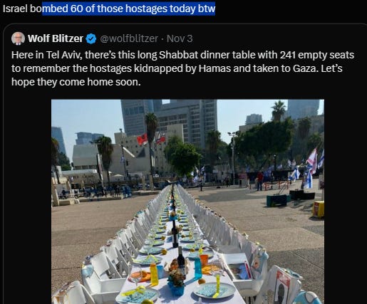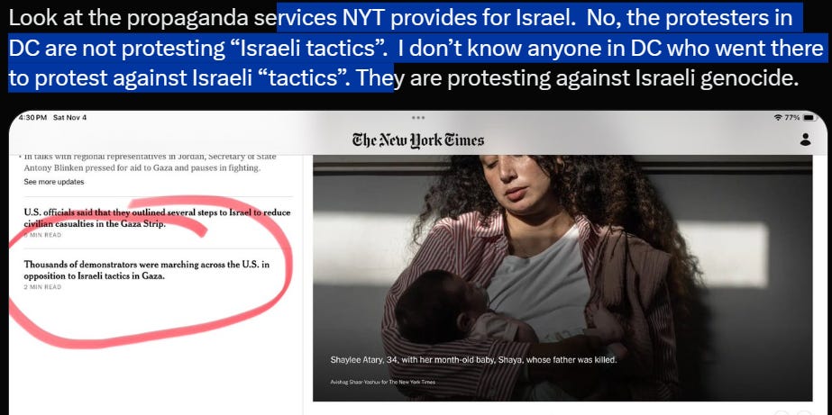 Sometime, satire like The Onion is thousand miles better than mainstream media. Nov 4 - Nov 5 to be heaviest bombardment of Gaza since the beginning of the aggression, complete blackout in Gaza again. The victim who is able to articulate the situation of the victim has ceased to be a victim: he or she has become a threat. The whole world is ringing telling Israel to stop, and this nuclear regime is responding by intensifying bombing.