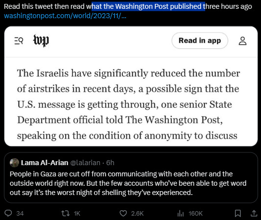 Once again, I’d like to thank all the journalists reaching out to support verifying facts and cautious reporting amid the fog of war. Every word matters. Human lives are at stake. You all are a beacon of light. Because too many errors, dehumanize for Gazans people, for Palestine people, since Israel - Palestine war started.