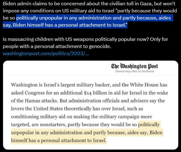 The whole society needs to look at itself. I say this as an Israeli. Biden and entire western leader [except Scotland First Leader Humza Yousaf and Irish Leo Eric Varadkar] enabling genocide by Israel in Gaza. Don’t know if Trump re-elected again. How in the holy hell is a guy [Trump] with 90 something criminal counts against him even close to Biden. I can’t wrap my mind around this.