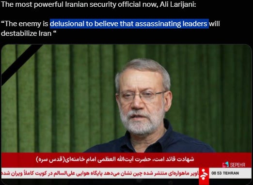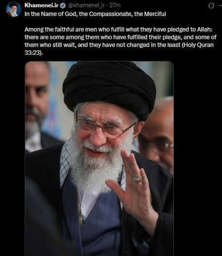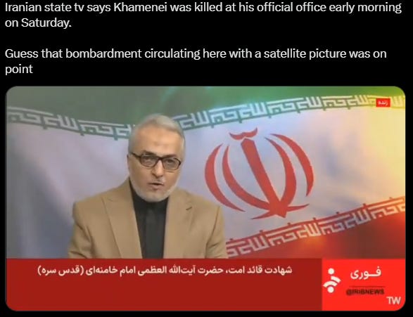 [posted Sunday, around 5.57am Tehran time, just also around 30 minutes before multiple Iran media state circulating news the assassination of Khamenei by Israel and the U.S.]