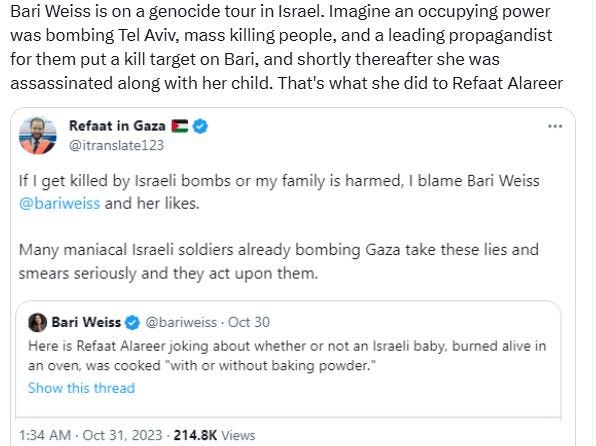 [Refaat Rafiq Alareer IF I MUST DIE] Refaat Rafiq Alareer was extremely hungry, November 2023, days before Refaat killed by Israel airstrike. If November 2023 already [one-by-one Gazan] extremely famine, extremely hungry, imagine November 2025 or more than 2 years Israel’s Genocide in Gaza.
