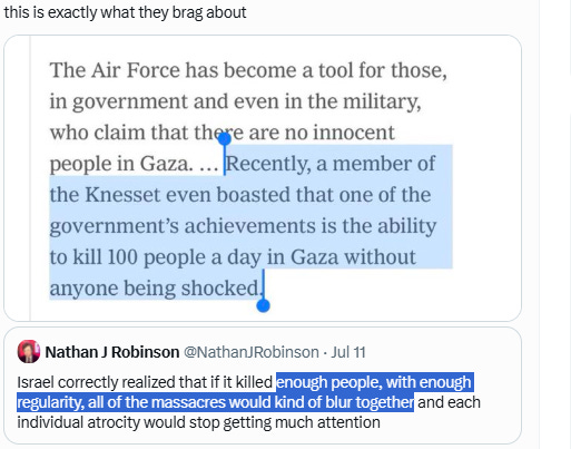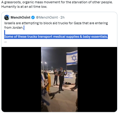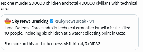 There is no propaganda on earth more cynical than a nuclear-backed apartheid state pretending to be the victim of the children it’s starving. A technical error also considered the fact that ‘the actor of technical error’ is owned nuclear weapons. Israel has shown that it can commit genocide and get away with it. It’s getting away with it. No one with the power to stop it is doing so. Sanctions are not being seriously applied, a peace for has not been assembled to stop the genocide. This is appeasement. Anybody who cannot link Trump's sudden conversion to going to war for Israel with the equally sudden non-existence of the Epstein files, is brain dead. Israel escalates its criminal depravity to have Palestinians beg for horrifically unfair "agreements" so their starving children will not be slaughtered while pleading for food.