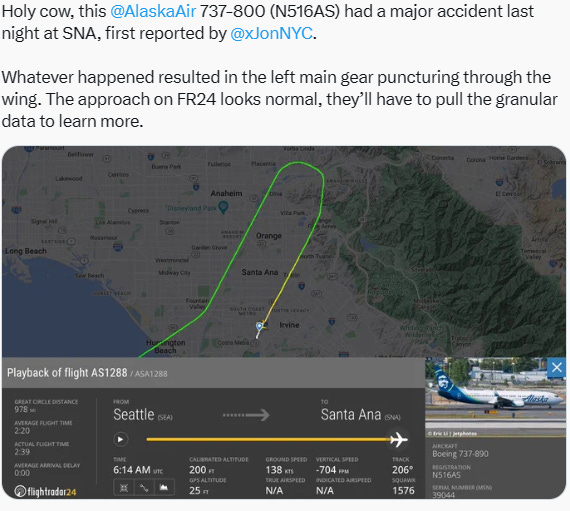 48 Hours ago, 737-800 (N516AS) had a major accident last night at Santa Anna. Boeing's inability to manage itself and build planes will become a national security and national economic concern. Yes, there is not a single airplane in the sky that does not have a bad hole on it. Cleaning out the holes solves the problem 70% of the time, and slapping a doubler on it solves it 95% of the time. Something like this would make me nervous to get on a MAX again, not the previous issues. Boeing and Spirit grapple with newly discovered quality issue on 737 Max aircraft. Last May or 3 months ago, Boeing supplier Spirit AeroSystem flags US$31 million hit from 737 fuselage defect. They’ve been building the 737 for five decades and somehow still find new and more expensive ways to fuck it up.