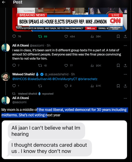 PRINTED ADS IN NEW YORK TIMES FRIDAY OCT 27, 2023, paid for by ARAB AMERICAN COMMUNITY. "Arab Americans feel disenfranchised, we feel ignored – and I think in many ways we feel betrayed.”