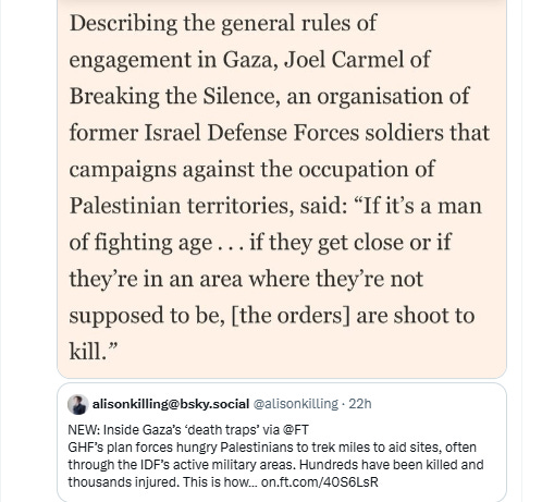Trump, who has portrayed himself as an anti-war president, proclaimed in 2019 that great nations do not start forever wars. He is uninterested in exporting liberalism or democracy abroad. I can see an Israel skeptic Republican candidate for President coming along in 2028 and getting a lot of support. Maybe it will be Massie, maybe someone else. Republicans under 50 have a majority negative opinion on Israel. Young people have phones and see the dead Palestinian children on social media. Many of us are disgusted when our government collaborates with Israel or politicians declare undying support for this. What happens when both parties no longer support Israel? That day is coming.
