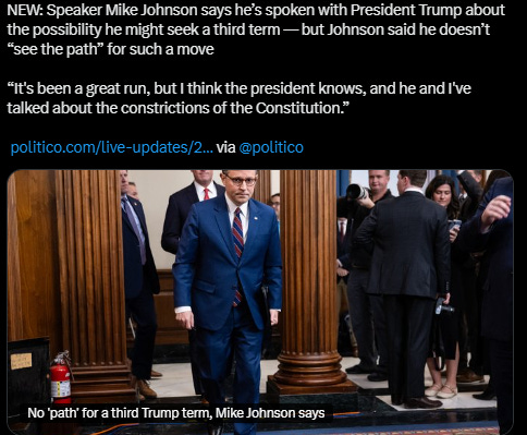 Trump — speaking to reporters Wednesday on Air Force One as he flew to South Korea for the next stop in his Asia tour — said “it’s pretty clear” that he isn’t allowed to run again under the Constitution, a conclusion reached by legal scholars, critics and even Speaker Mike Johnson.