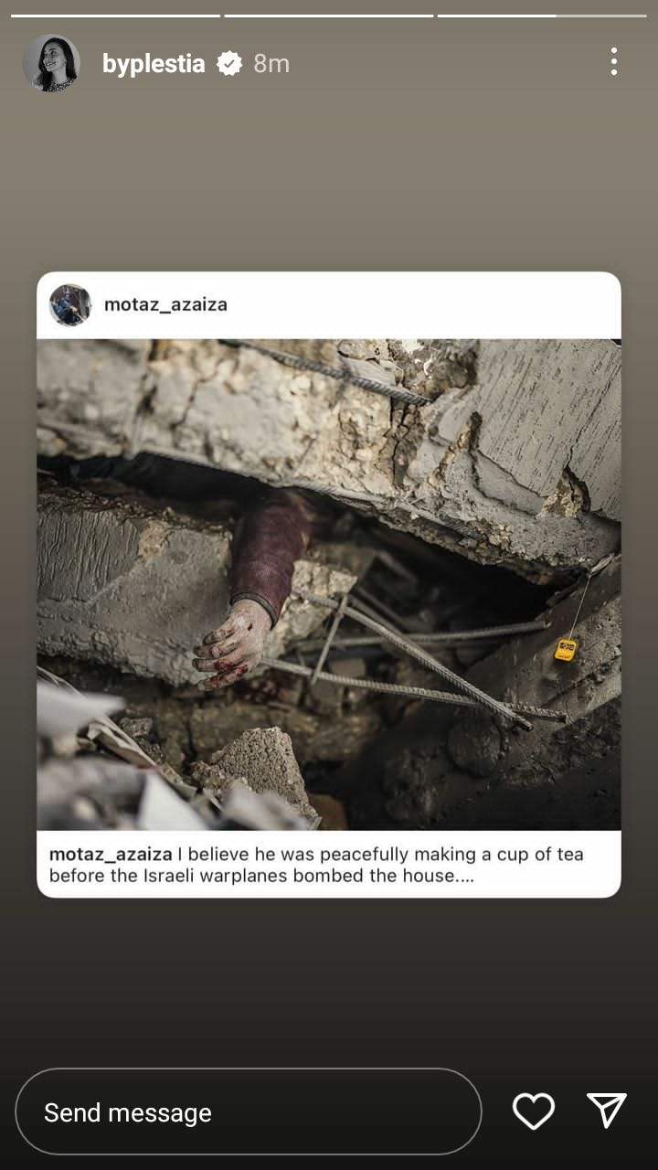I dont know this is essentials or not, but, Victoria Secret / VS Angel posted in her stories hours ago, which, she already on glamorous lifestyle, and then finally posted like this, imagine if you didn’t speak up for Palestine. For Gaza.