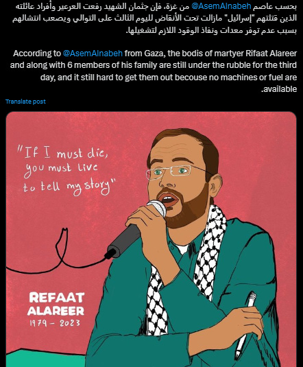 English —- original post by Professor Refaat Al Areer