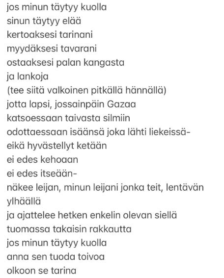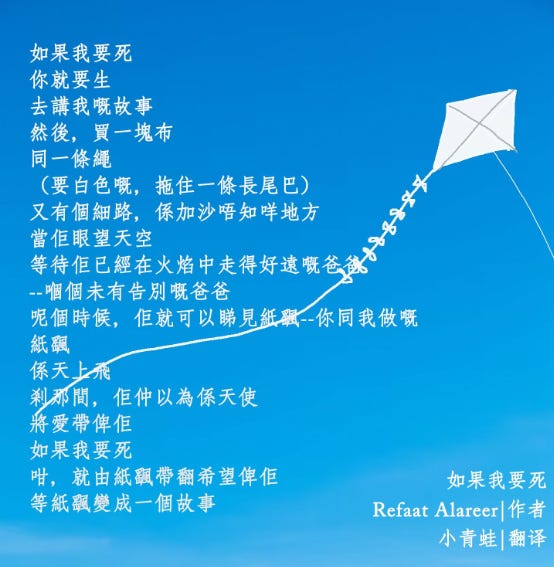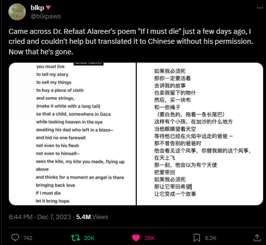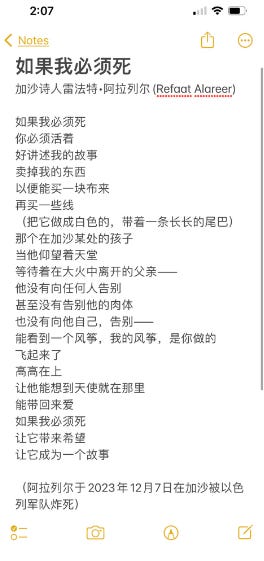 Chinese / Mandarin [1st version] ==== twitter [at]blkpaws ===== she / he started initiative across globally to translating Refaat Alareer’s poem
