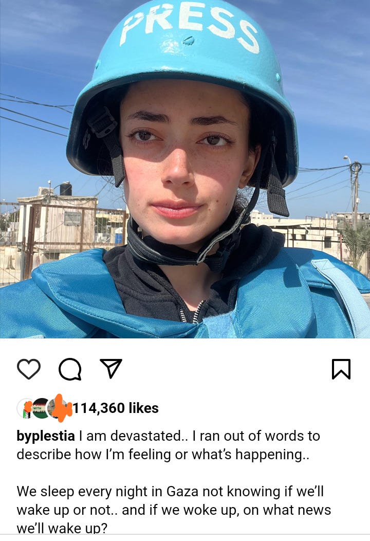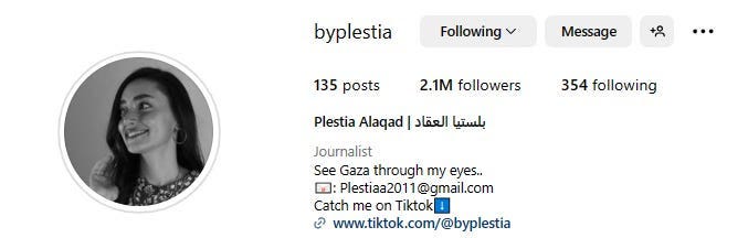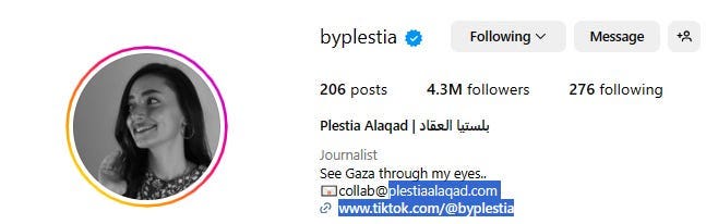 I know a lot of high-ranking media, such as New York Times, Guardian, Anadolu, BILD, Spiegel, Financial Times, Strait Times, Washington Post etc subscribed my substack. Plestia ‘Bosbos’ Alaqad ready to be your Stringer or Keynote Speaker or Source about [everything related] Gaza, as Global Opinionator the Washington Post Rana Ayyub Rana Ayyub doing around 84 hours ago, or 22 hours ago interview with Egyptian activist Zein Rahma, please contact Plestiaa2011@gmail.com or collab@plestiaalaqad.com