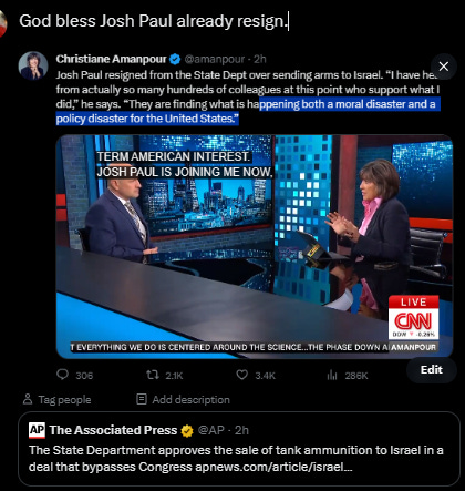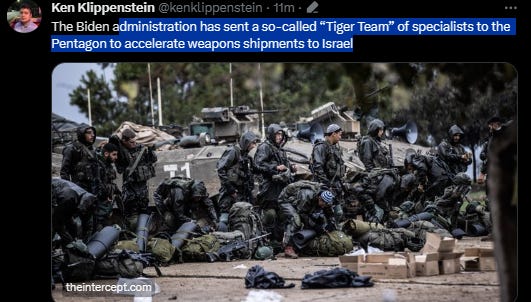 Tiger Team” of specialists to the Pentagon to accelerate weapons shipments to Israel. That’s how Josh Paul resigned from US State Department. Via Ken Klippenstein ‘Kennie’ Ken Klippenstein from The Intercept