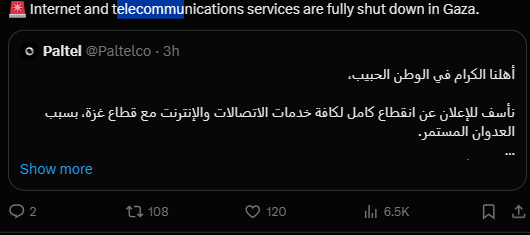 No such support has been afforded to Palestinians in Gaza who face communications blackouts and a humanitarian catastrophe of unspeakable scale.