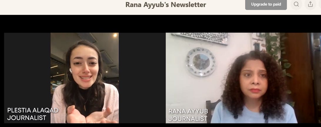 Listening to Plestia Alaqad and Rana Ayyub's interview is so heartwarming and heartbreaking.