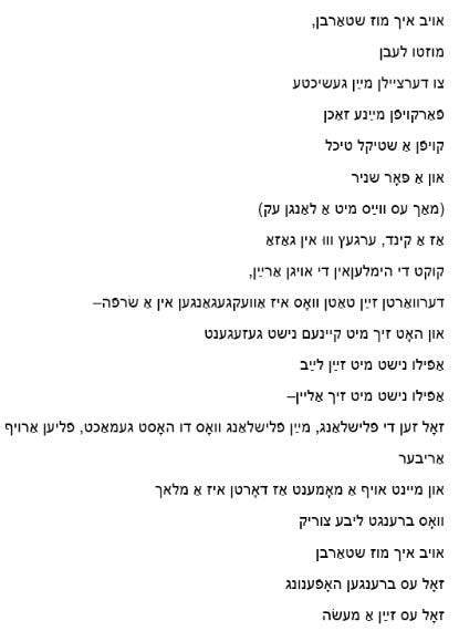 Yiddish [German dialect which uses many Hebrew words but with a very distinctive Ashkenazic pronunciation — not Hebrew] === twitter [at]antimaskilic