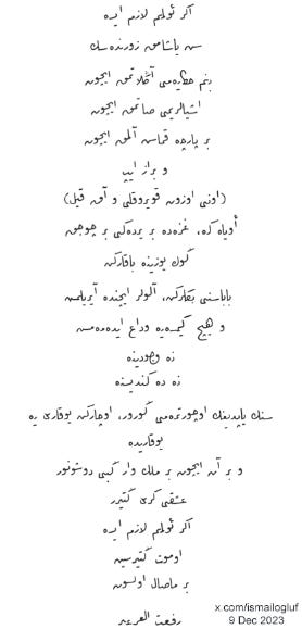 Ottoman Turkish (لِسانِ عُثمانى, Lisân-ı Osmânî, Osmanlı Türkçesi, or عثمانليجه Osmanlıca) === twitter [at]IsmailogluF