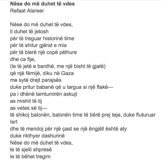 110+ languages of poem Refaat al Areer ‘IF I MUST DIE’