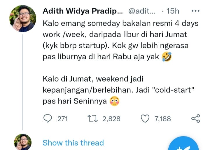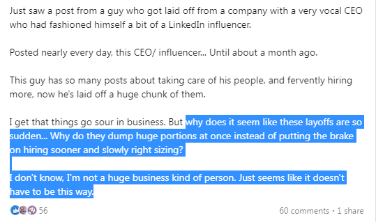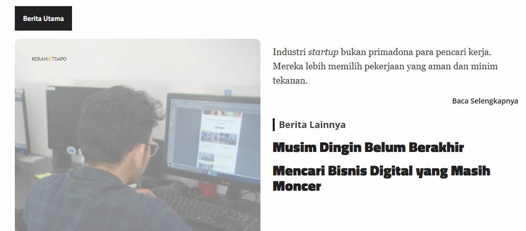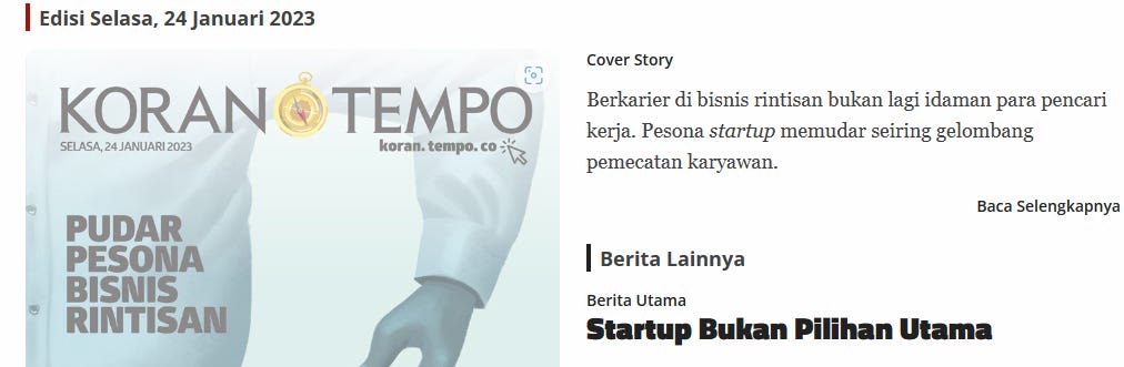 One fundamental error hiring managers make is being so focused on candidates’ skills they forget the importance of building trust early in the process. Flexing lifestyle (in Indonesia startup worker) has a result of error mechanism in hiring, then now a lot "the Flexing" suffering rout crisis of Tech Startup globally (not only in Indonesia). (Especially in Indonesia, maybe) every Tech startup person are stressed that they don't know how to price deals anymore as if there was ever a science to it. The 'cut burn' is more about all the wasteful expenses - office spaces, mindless perks, offsites, non performing employees, too many layers etc. Imagine in Indonesia startup tech: (even) in 1 company has a stark contrast: unpaid intern look like slavery, but in another side is overpaid remuneration.