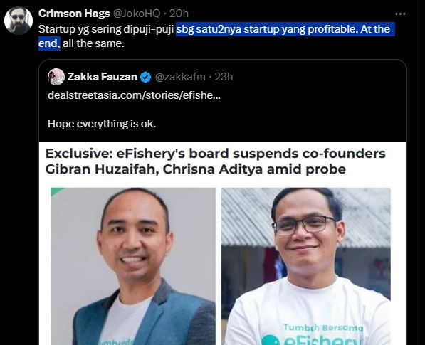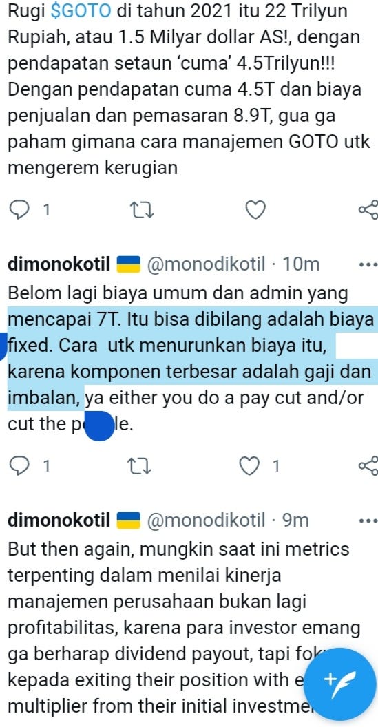 Current shitshow of startups with slim paths to profitability and unnecessary high valuations. We need to bring back profitability on the table---like in one example: how 4 conglomerates help Bukalapak with completely complicated cooperation.