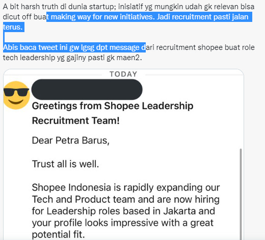 Empathy, unity & unwavering support for the weak in amidst tech crisis globally. Not only in Indonesia. Too much firing when just 1 month ago (is) May Day. Even empathy to her. As a person in past has too much painful etcetera etcetera etcetera, I really feel how big the crisis now, folks. No lie.