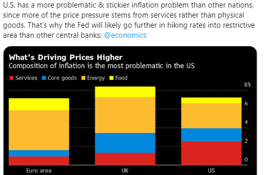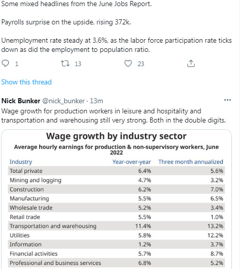 The Fed slipped behind the curve on inflation - not entirely their fault given the external shocks of war, etc - but their job to fix it and they want the world to know it. They can’t grow food or pump oil, but they can hammer demand. The Fed Powell argues, In economic discussion generally, there's much too much focus on demand management, and not enough on things that will make us grow at the maximum sustainable level - sustainable growth - in the longer run.