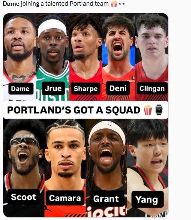Portland traded Damian Lillard for Jrue Holiday, Toumani Camara, assets in 2023 – then Holiday to Boston for Robert Williams III, Malcolm Brogdon, assets (one led to Deni Avdija). Now, Blazers have Lillard and Holiday, plus Avdija, Williams, Camara, a 2029 first, two MIL swaps.